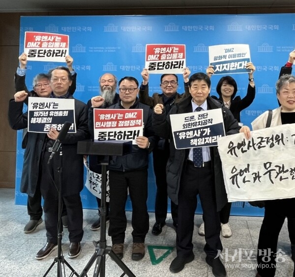 시민사회단체들이 유엔사의 비무장지대 출입통제와 국회에서 추진 중인 비무장지대법 반대 입장을 강도 높게 규탄하고 나섰다.